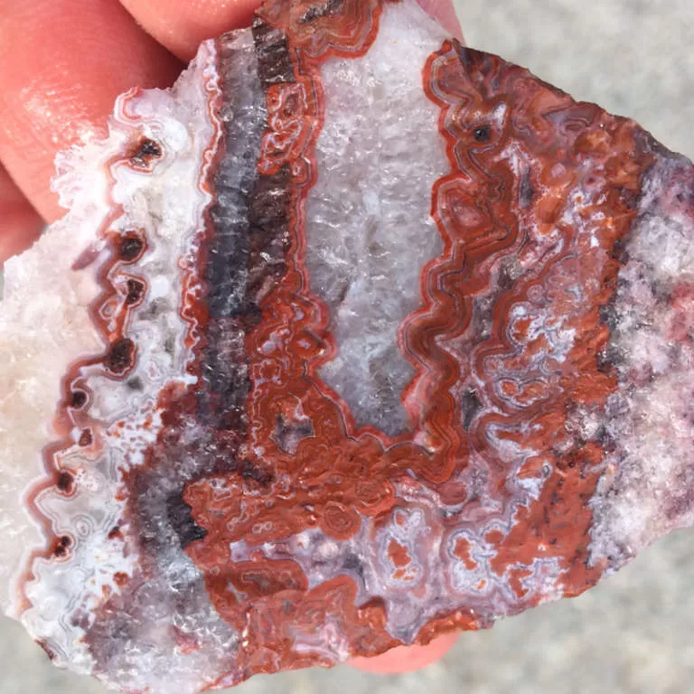 This beautiful example of Mexican Red Lace Agate comes from the Noriega claim in Northern Chihuahua, Mexico. This agate is loaded with bright colors and intricate patterns.